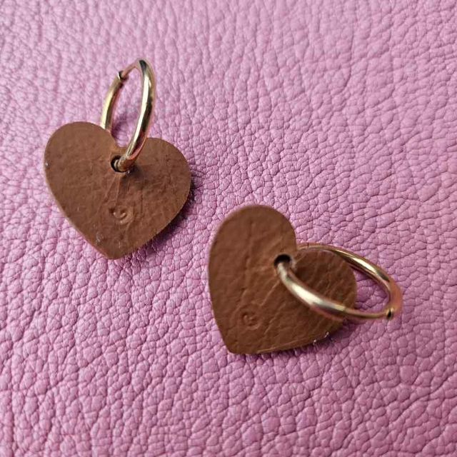 Boucles d'oreilles pour la "team Cœur" en cuir revalorisé, fabriquées à la main. Versions MINI, ultra légères, qui pourront plaire à toute la famille, enfant comme parent !