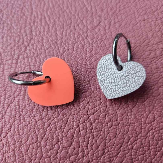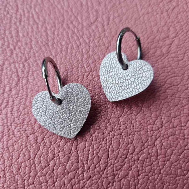 Boucles d'oreilles pour la "team Cœur" en cuir revalorisé, fabriquées à la main. Versions MINI, ultra légères, qui pourront plaire à toute la famille, enfant comme parent !