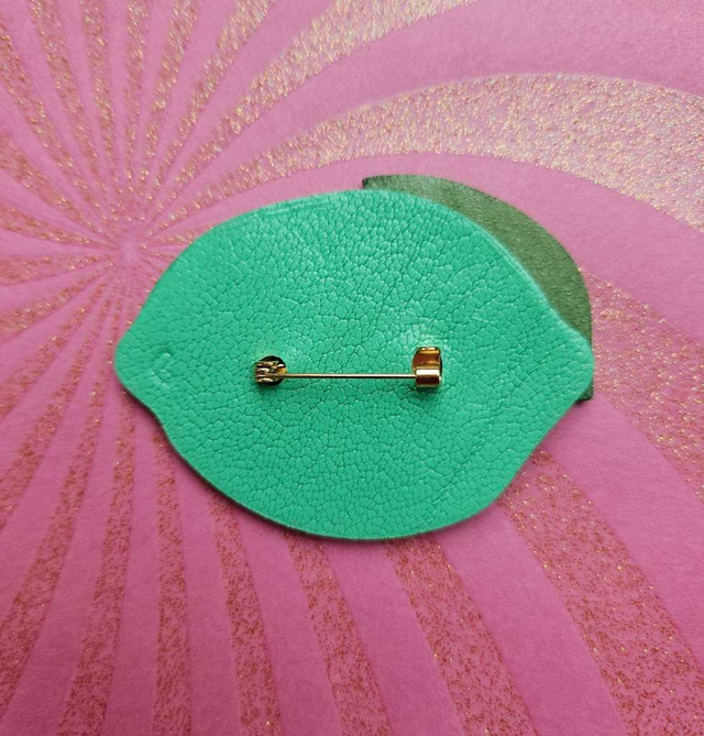 Broche citron en cuir revalorisé et fabriquée à la main.